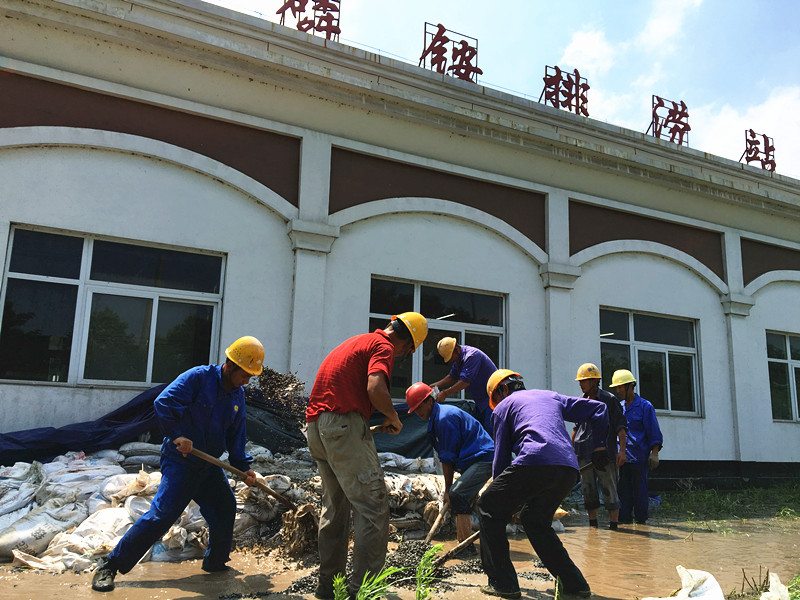 圖為7月8日上午,安徽z6mg人生就是博化工股份有限公司組織人員排除一疑似管涌險情。