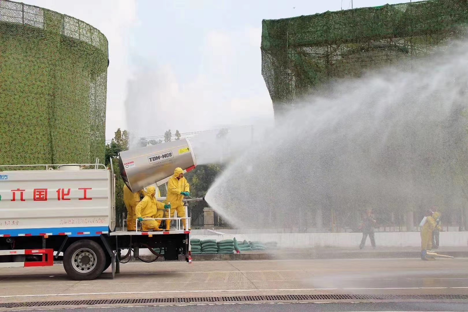(圖為z6mg人生就是博公司的防化隊員正在進行消除空襲后果演習任務)